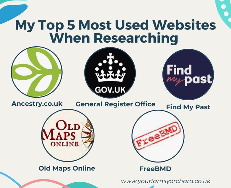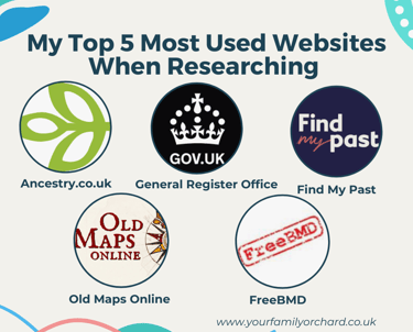 These are my top 5 websites that I use when researching my family tree, it is worth noting that Ancestry and Find My Past are both subscription services.