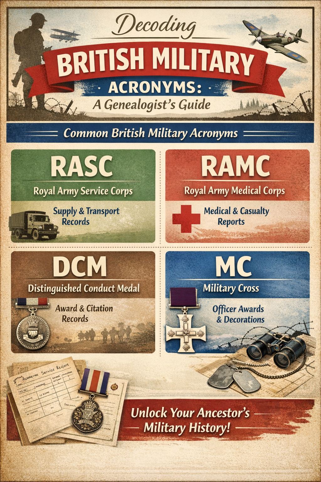 Genealogy is not just about names and dates—it’s about uncovering stories. Understanding British military acronyms transforms a terse record into a narrative of courage, duty, and personal legacy.